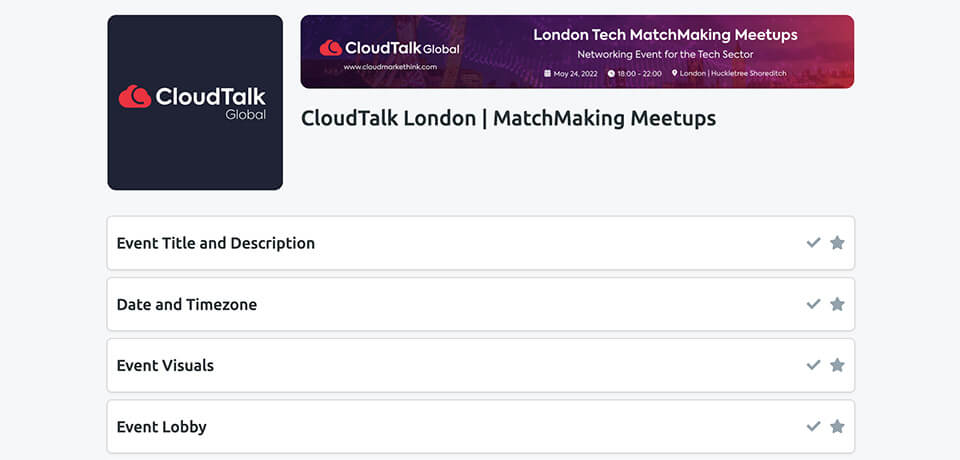 Measure the success of your event and the ROI by evaluating KPI’s and values gathered from Deal Room’s highly advanced analytics provided on the Event Builder Panel.